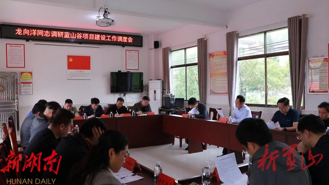 新蓝山客户端4月28日讯 (通讯员 王艺淞) 4月28日上午,蓝山县委书记龙向洋赴湘江源瑶族乡调研蓝山谷项目建设情况并主持召开调度会。蓝山县委常委、宣传部部长黄加葵,县委常委、县委办主任曾祥文,副县长唐璨参加。