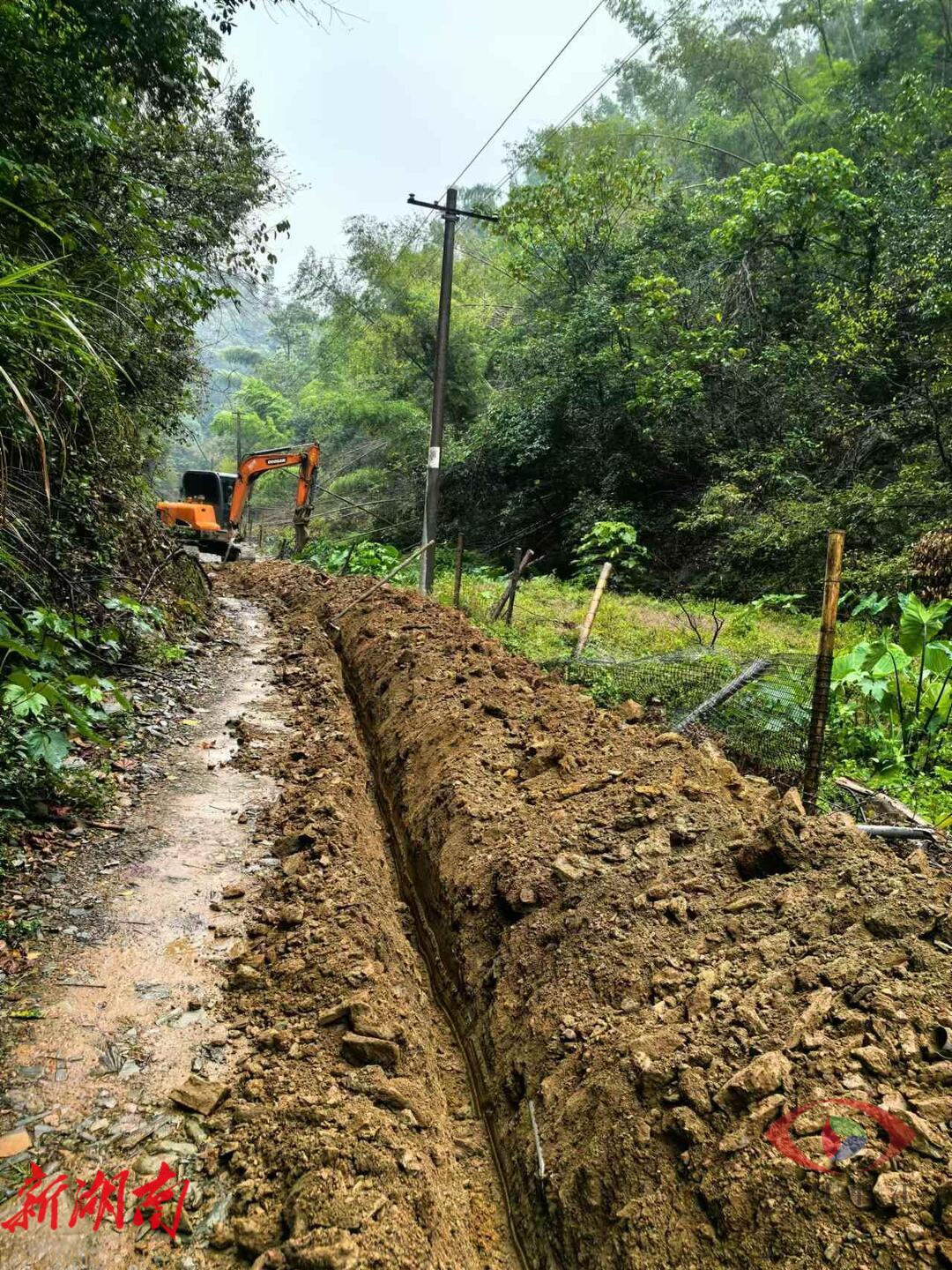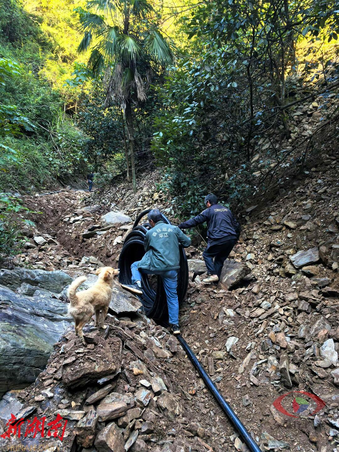 秋湖村村民正在铺设新的饮水管道
