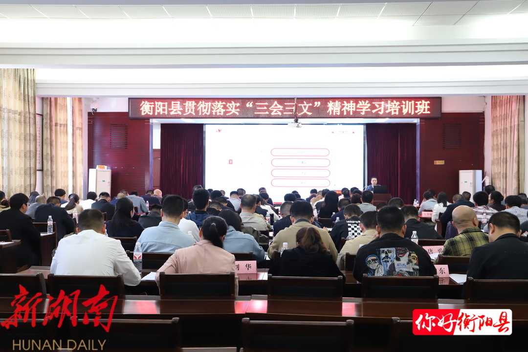 衡阳县融媒4月28日讯(记者:丁源 ) 4月28日,县人大举行贯彻落实“三会三文”精神学习培训班。省人大常委会研究室综合处一级主任科员左文星就“三会三文”精神进行专题授课。县人大常委会主任叶强出席。