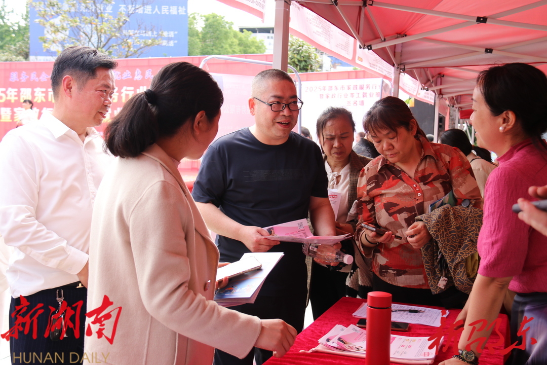 新邵东客户端4月28日讯(记者 刘意忠) 4月27日,邵东市举办家政服务行业专场招聘会暨家政行业零工就业推荐会,47家省内外家政企业及职业培训机构现场提供养老护理、母婴照护等就业岗位1500余个,吸引近千名求职者参与。