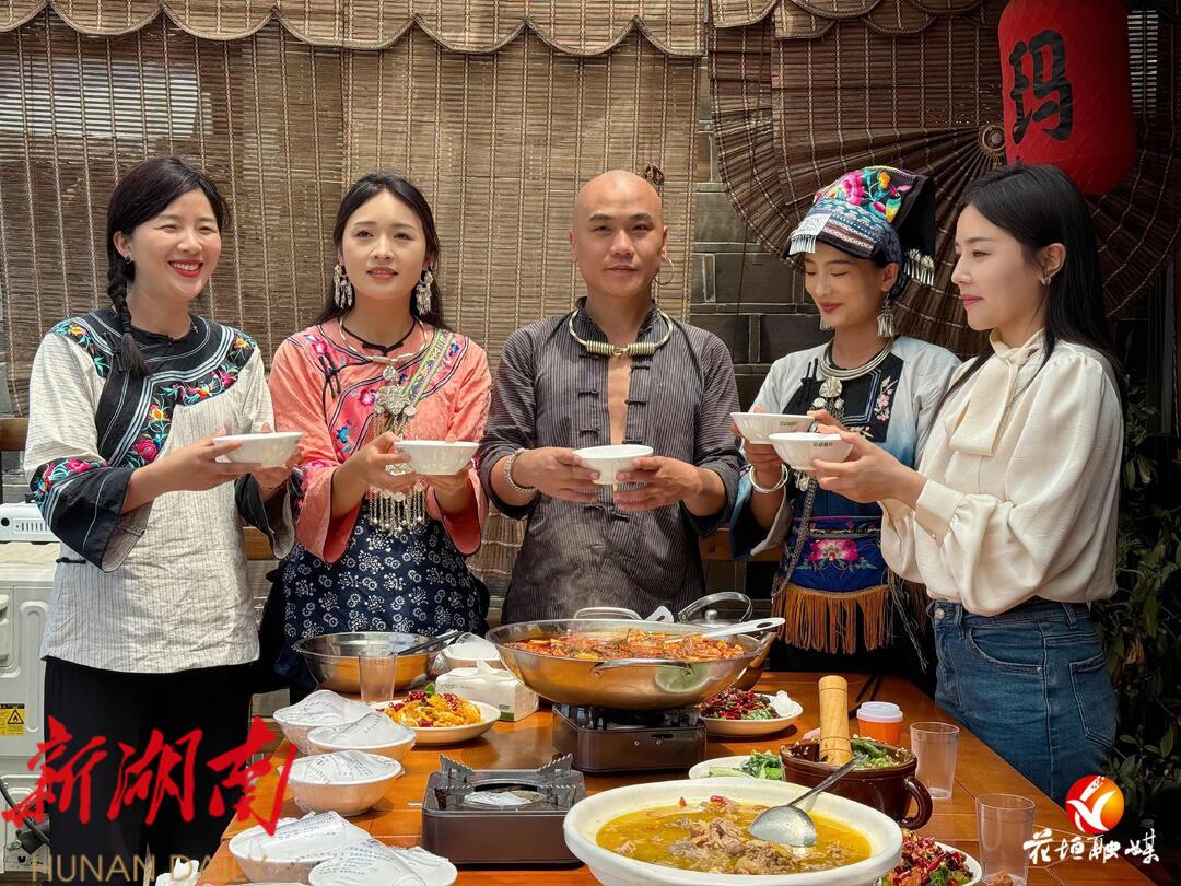 活动期间,推介团还品尝了地道的边城风味:鲜香麻辣的角角鱼、醇厚浓郁的血粑鸭、酸辣爽口的米豆腐等特色美食获得一致好评。傍晚时分,茶峒码头落日熔金,江面波光粼粼,镜头定格下这动人的“边城夕照”。