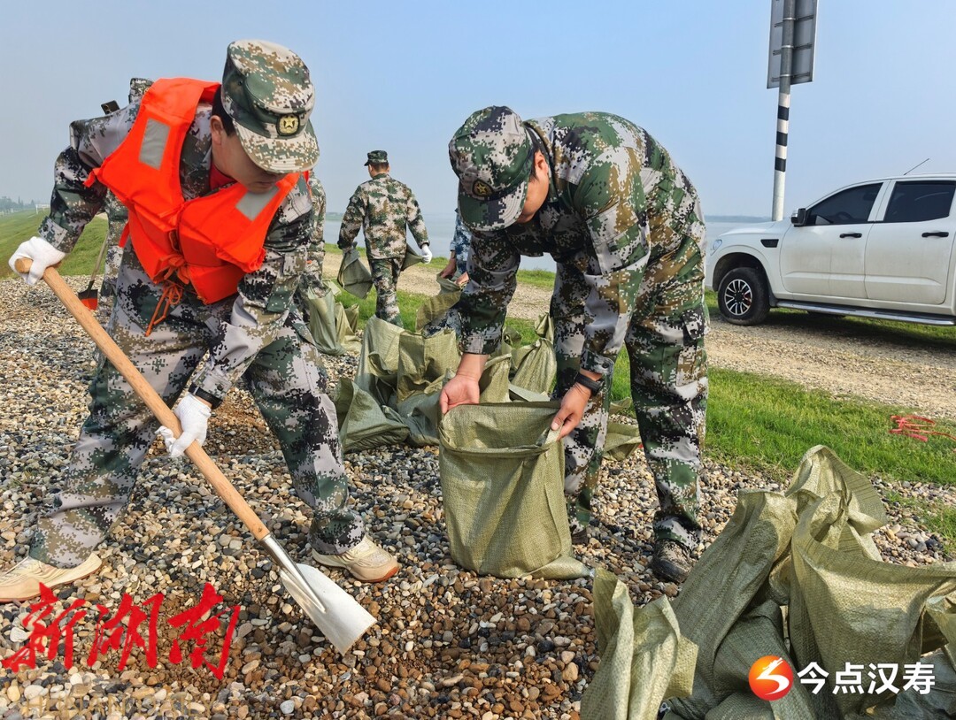演练在岩汪湖镇雷神庵村沅水一线大堤35+700处展开, 模拟沅水流域遭遇强降雨,大堤出现管涌险情。随着警报拉响,岩汪湖镇15名民兵应急队员迅速集结,携带铁锹、沙袋等防汛物资奔赴“险情”现场。他们分工明确,动作娴熟,有序开展抢险作业,争分夺秒装填沙袋、加固堤防。同时,与洋淘湖镇、蒋家嘴镇、百禄桥镇民兵及县各责任单位紧密配合,在分指统一指挥下,高效完成应急抢险任务。