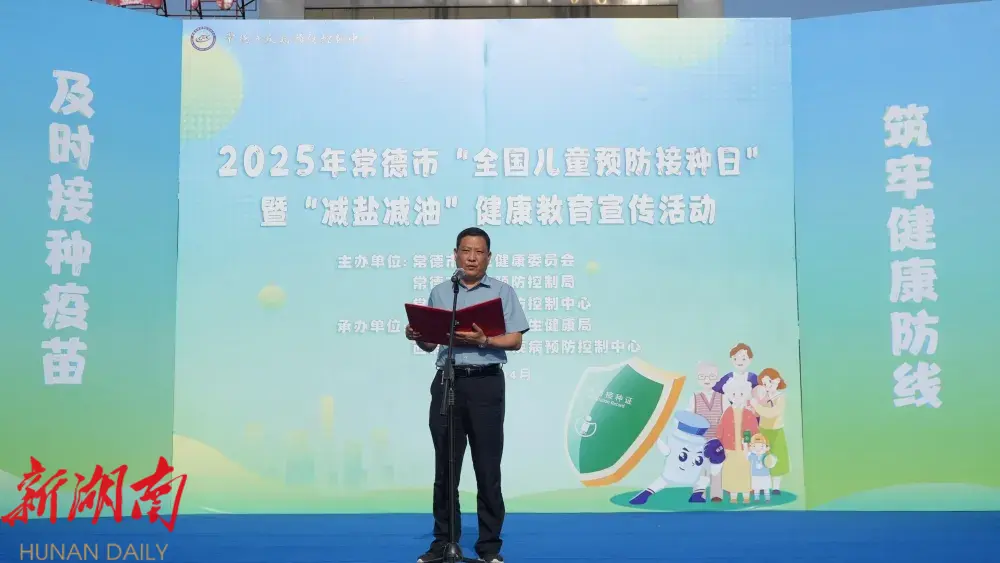 西洞庭融媒4月17日讯(记者:张雅洁) 4月17日下午,在第39个“全国儿童预防接种日”来临之际,2025年常德市“全国儿童预防接种日”暨“减盐减油”健康教育宣传活动在西洞庭管理区拉开帷幕。区党委委员、管委会副主任谈海波出席活动并致辞。