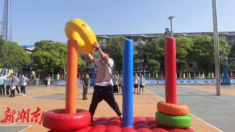 上午8时30分,职工趣味运动会在雄壮的国歌声中拉开帷幕。比赛共设汉诺塔、同心鼓、智勇冲关、龙腾四海、众人拾柴、三方拔河六个项目,集趣味性、娱乐性于一体。