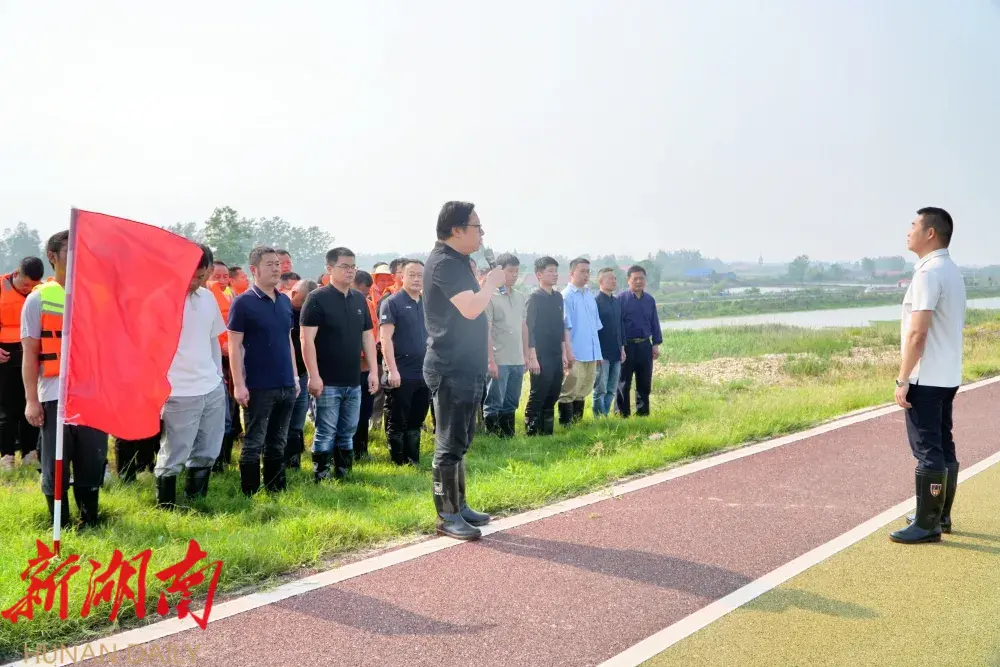 演练围绕“实战化、全流程”的原则开展,模拟西洞庭遭遇特大暴雨,龙泉街道负责的泥港口堤段水位达到保证水位(36.86米),且出现险情。
