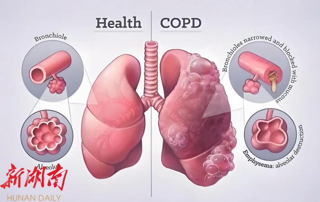 慢性阻塞性肺疾病(简称“慢阻肺”)是一种高患病率的慢性疾病,在国内超过1亿患者,是我国第三大死亡病因。其特征包括呼吸困难、咳嗽和咳痰等症状,主要是由于气道和/或肺泡的异常导致持续性气流阻塞。在漫长的患病过程中,易出现急性加重,治疗窗口窄,且患者往往伴有肺间质异常,甚至肺纤维化,极易引起呼吸衰竭,以致死亡。目前,针对慢阻肺尚无有效的根治方法,只能通过吸入药物来长期缓解和控制病情加剧。一旦发展成为肺纤维化,现有治疗手段无法逆转呼吸功能进行性降低,导致寿命缩短增加死亡的风险。