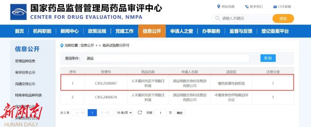 湖南日报·新湖南客户端4月29日讯(长沙经开区工作站记者 陈琪 通讯员 姚碧娟) 近日,国家药品监督管理局正式批准源品生物自主研发的1类生物制品——“人羊膜间充质干细胞注射液”新药临床试验(IND),适应症为慢性阻塞性肺疾病(COPD)。这是继该产品在中重度急性呼吸窘迫综合征领域取得临床批件后,在呼吸系统疾病治疗领域的又一里程碑突破,为国内超1亿慢阻肺患者点燃生命新希望。