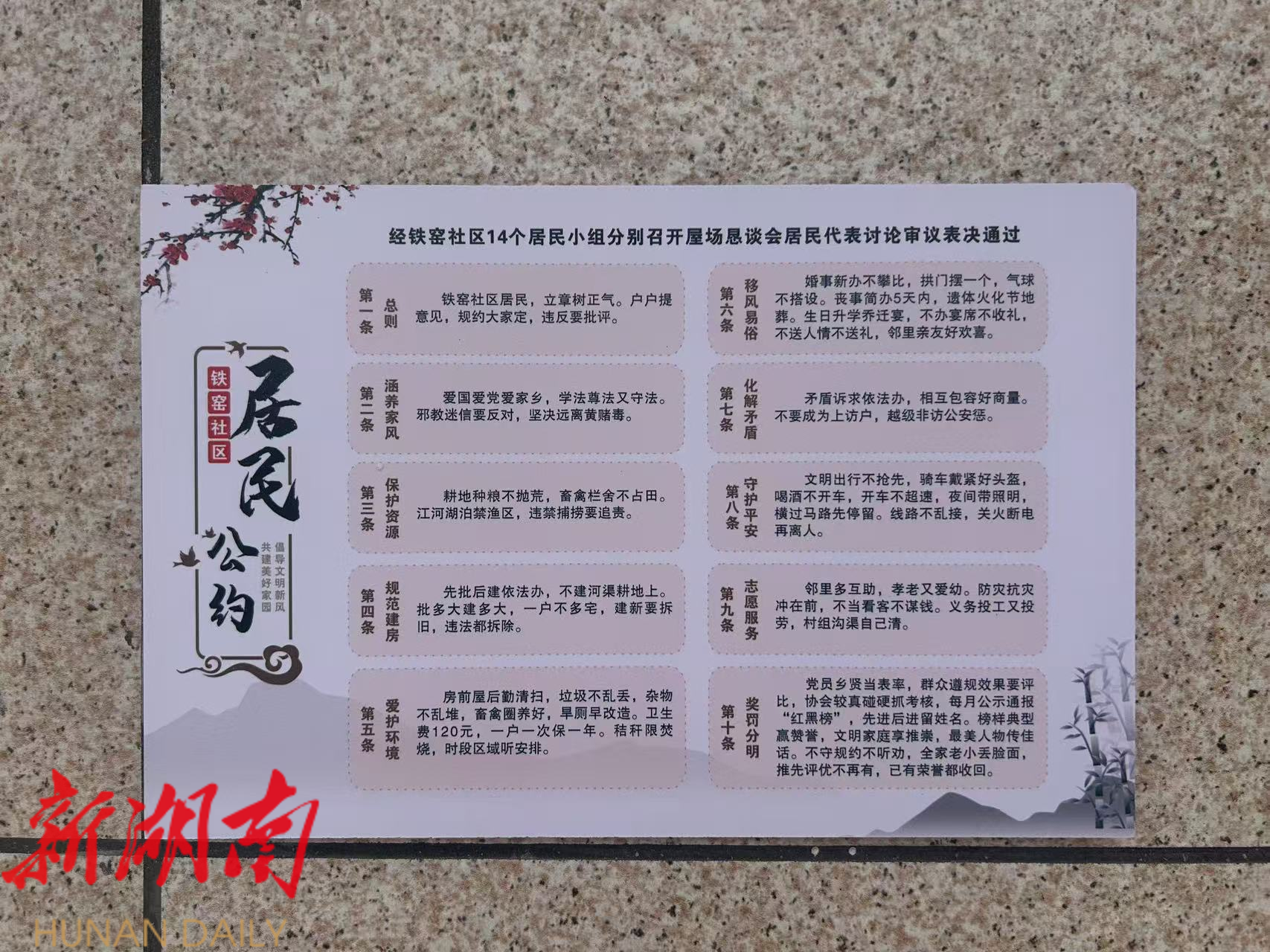 近年来,岭北镇坚持把村规民约的制定和宣传作为提升基层治理的一个突破口,在村规民约制定上动脑筋、宣传上下功夫。为确保村规民约接地气、群众自觉遵守,在制定过程中,该镇通过逐村逐组召开354场屋场恳谈会,采取群众“自己提、自己说、自己定”的方式广泛征求意见;为确保村规民约家喻户晓、深入人心,镇党建办抽调近百名镇村干部打桩定位,将统一制作的21块宣传栏、9350块入户宣传牌张贴至各村(社区)、村民大门右侧。“自从每家每户都张贴了这个村规民约后,大家都自觉打扫房前屋后、公共区域卫生,邻里关系也和谐融洽了。尤其是在婚丧治理方面,给我们减轻了不少经济压力。”金沙台村李大姐边干农活边称赞道。