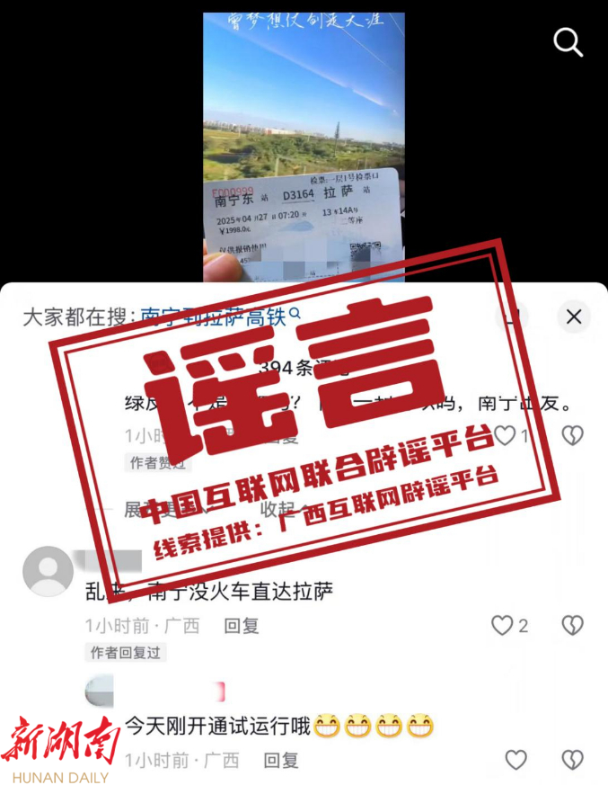 辟谣:“广西南宁开通直达西藏拉萨的动车”不实