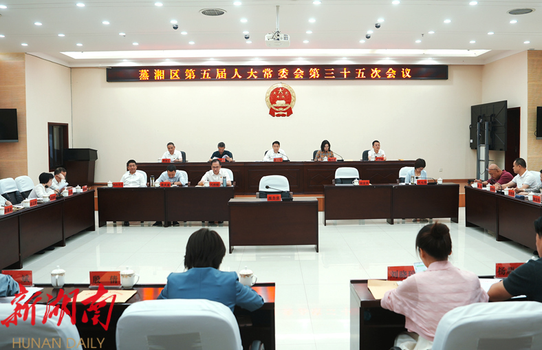 蒸湘融媒4月29日讯(记者张险波)4月29日,蒸湘区第五届人民代表大会常务委员会第三十五次会议召开,区人大常委会主任彭东阳主持会议。