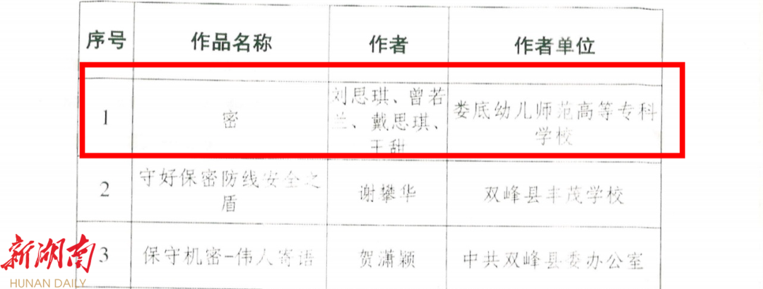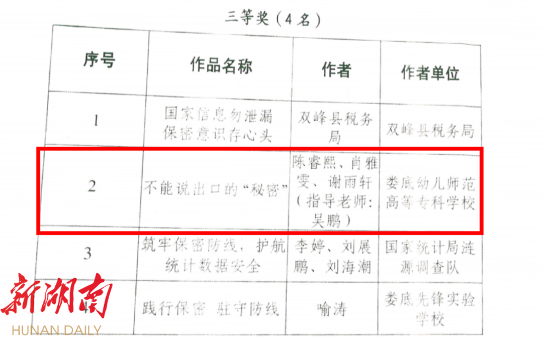 陈睿熙、肖雅雯、谢雨轩在2024年娄底市“寻找最美保密法治代言人”微视频征集评选活动中荣获三等奖。