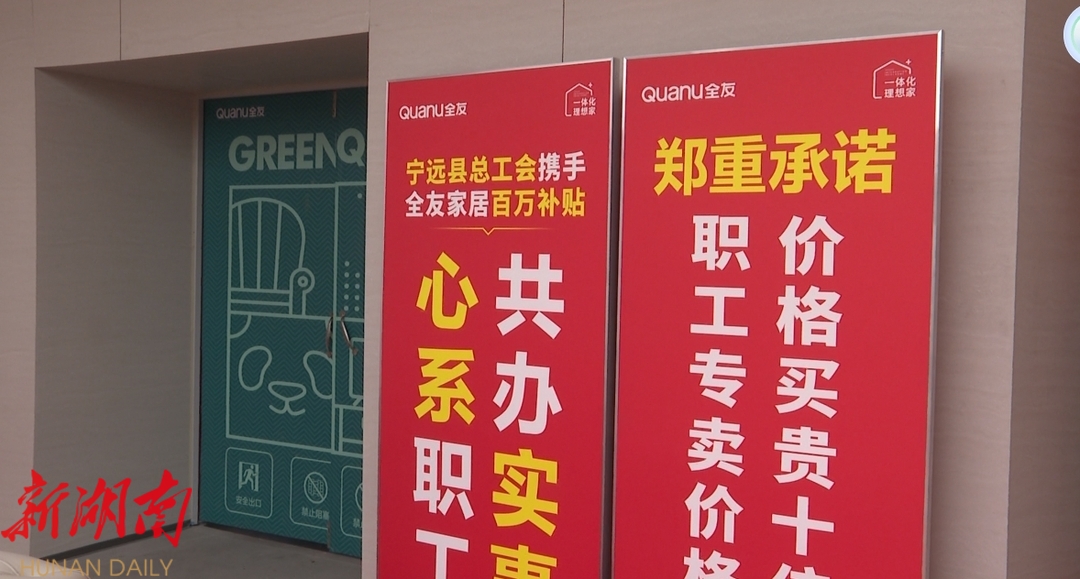 “为响应国家2025年消费品补贴,宁远县全友家居在‘五一 ’ 期间举行盛大开业活动。同时,携手宁远县总工会开展百万补贴行动,并举办工会会员专项内购会,真正把实惠送到每一个消费者手里。 ” 宁远县全友家居总经理于致汉介绍道。