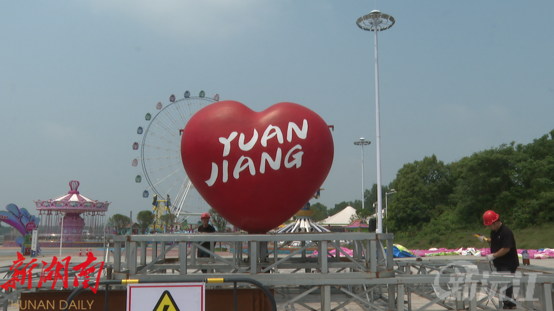 在彩虹岛景区,工作人员正在对景区入口处的红色“YUANJIANG”爱心艺术装置进行最后的安装调试。这个造型独特、色彩鲜艳的装置,即将成为景区的新地标,预计会吸引众多游客前来拍照打卡。与此同时,景区今年新推出的四人座天鹅脚踏船项目也备受期待,为家庭出游提供了安全又有趣的游玩选择。此外,景区的美食街也将进行升级,引入更多特色美食,满足游客的味蕾需求。