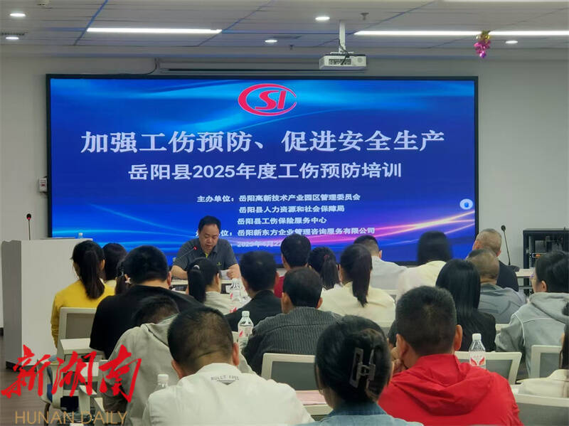 湖南日报·新湖南客户端4月30日讯(通讯员 易岳飞 张施怡 ) 为构建政企协同防护体系,推动安全生产治理模式向事前预防转型,4月22日,岳阳县人力资源和社会保障局工伤保险服务中心在高新技术产业园举办“加强工伤预防、促进安全生产”专题培训。全县制造、建筑领域重点企业安全负责人齐聚一堂,共筑工伤预防“立体防护网”。