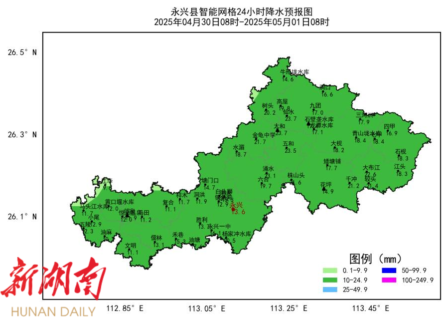 图 1 4月30日08时至5月1日08时 永兴 县 累计降 雨 量 预报 图