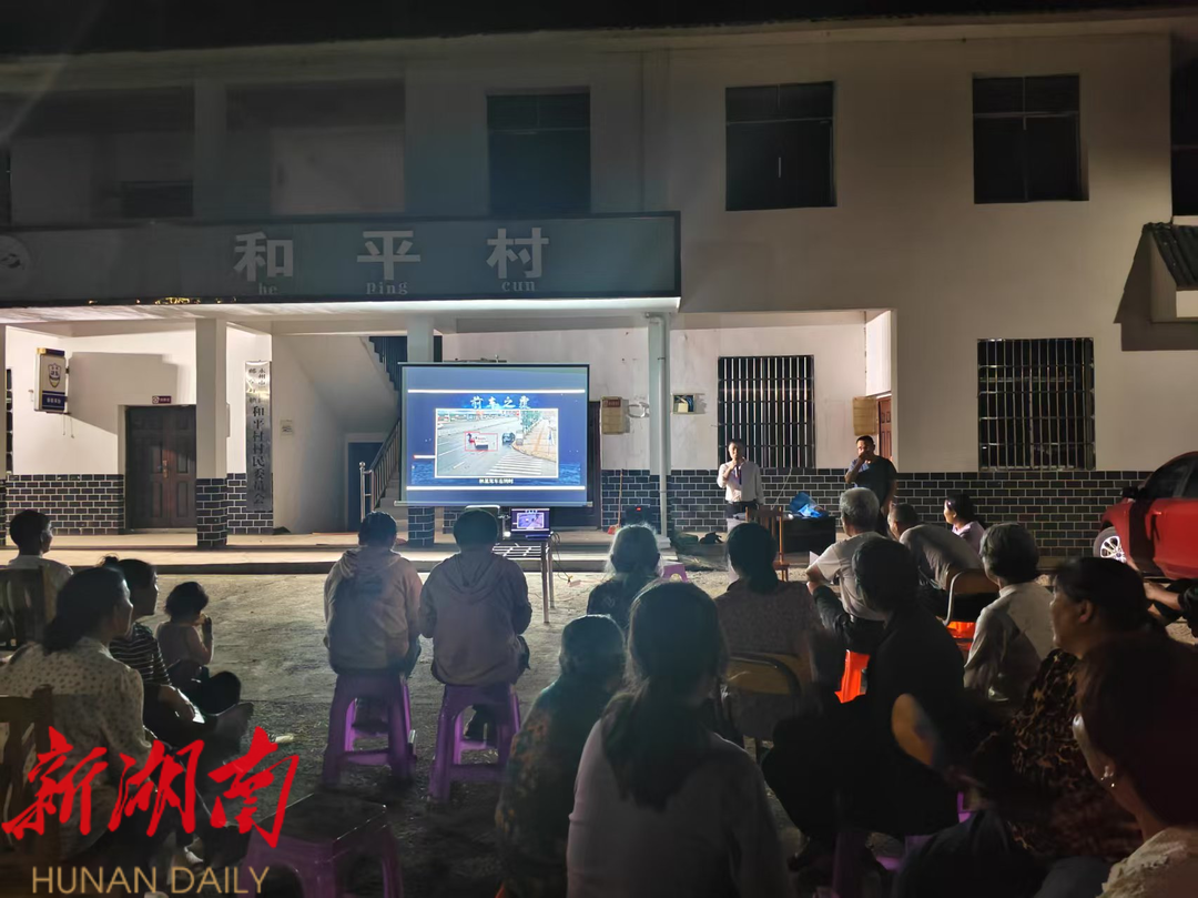 湖南日报·新湖南客户端4月30日讯(通讯员 罗琪琳 郑颖)4月29日晚,作为“文化润心·安全护航”主题系列活动的第二场,邮亭圩镇在和平村村委会广场推出“安全电影院”,将“禁毒铲毒”“道路交通”“农机安全”等宣传内容与“公益电影进农村”活动深度融合,为村民呈上一场寓教于乐的安全知识“盛宴”。