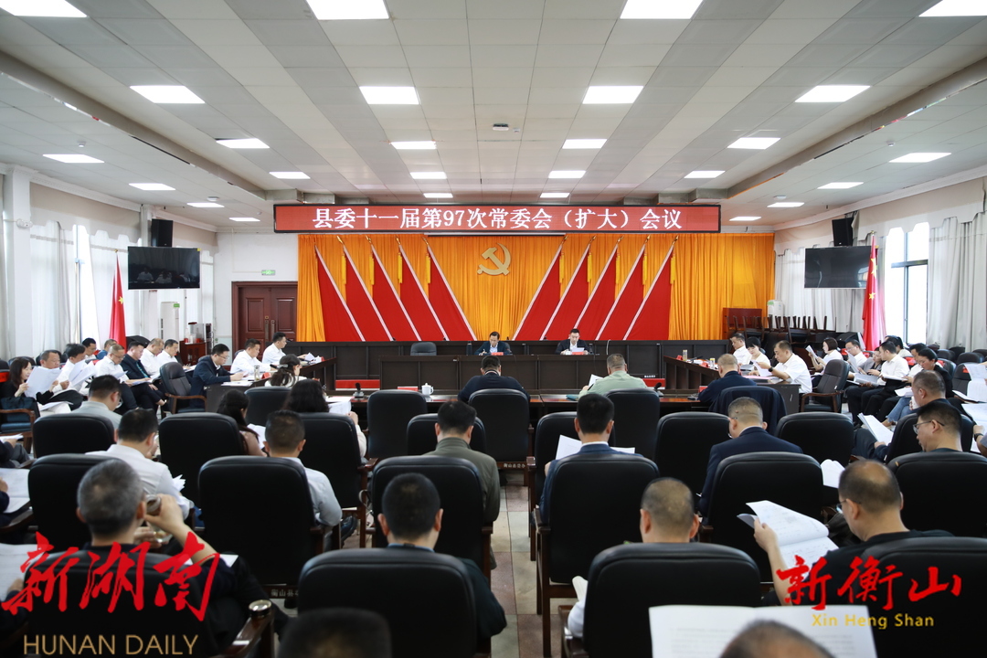 新衡山客户端4月30日讯(记者:刘永欢 周彭斌)4月30日,衡阳市政协副主席、衡山县委书记戴新贤主持召开县委十一届第97次常委会(扩大)会议,传达学习习近平总书记对双拥工作的重要指示精神以及在庆祝中华全国总工会成立100周年暨全国劳动模范和先进工作者表彰大会上的重要讲话精神;听取衡山县承办第三届衡阳市旅游发展大会工作情况汇报,审议《第三届衡阳市旅游发展大会衡山县执行委员会及工作机制》《第三届衡阳市旅游发展大会(衡山县)活动方案》《第三届衡阳市旅游发展大会衡山县拟推进重点项目清单》,听取衡山县2025年争资争项工作情况汇报。