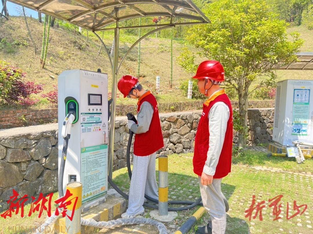 国网蓝山县供电公司:开展充电桩大“体检” 红马甲 护航“五一”绿色出行