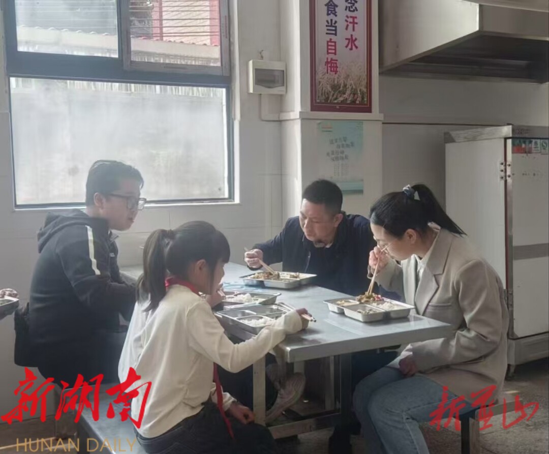 新蓝山客户端4月30日讯 (通讯员 黄春)“食堂阿姨煮的饭菜好吃吗?”“好吃,我喜欢紫菜蛋汤。”近日,楠市镇纪委工作人员来到镇中心小学陪餐,向学生了解学校伙食情况。