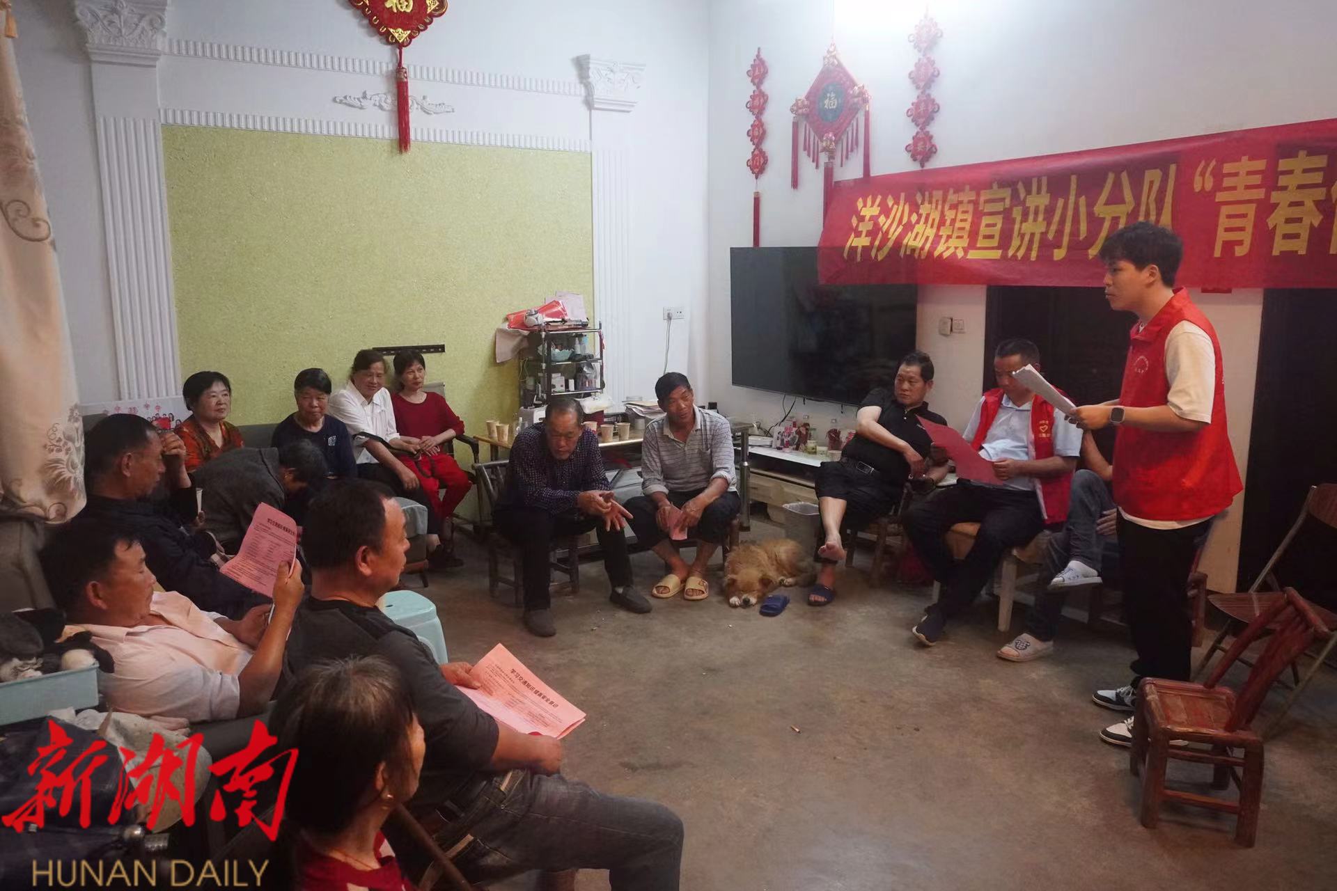 湖南日报·新湖南客户端4月30日讯(通讯员 邓洁) “老乡们!骑乘电动车务必要戴头盔……”近日,在湘阴县洋沙湖镇名山村屋场上,“青音传党音”宣讲小分队成员用湘阴方言“喊麦”,为村民宣讲交通安全知识。这支由平均年龄28岁的青年组成的“青音传党音”小分队,正以接地气的方式让党的声音传入洋沙湖“家家户户”。