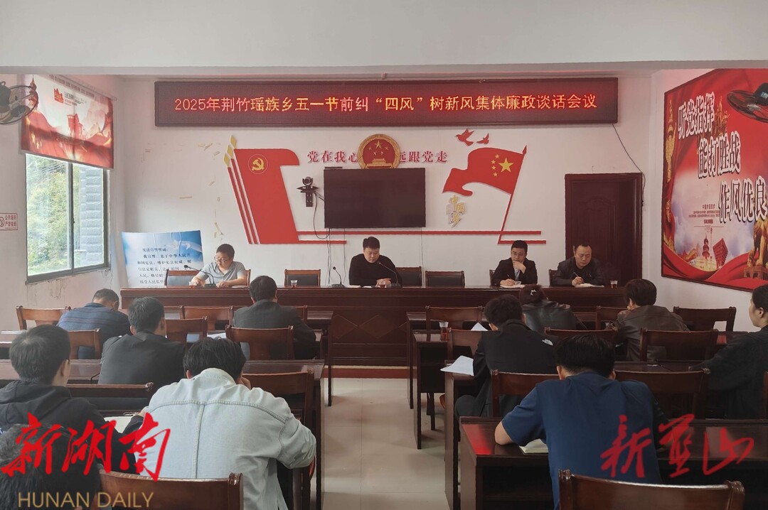 新蓝山客户端4月30日讯 (通讯员 朱积昌 陈源)4月30日,荆竹瑶族乡组织召开五一节前集体廉政谈话会。会议通过警示教育、纪律重申、廉政承诺等方式,进一步强化党员干部廉洁自律意识,推动作风建设走深走实。