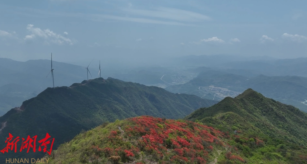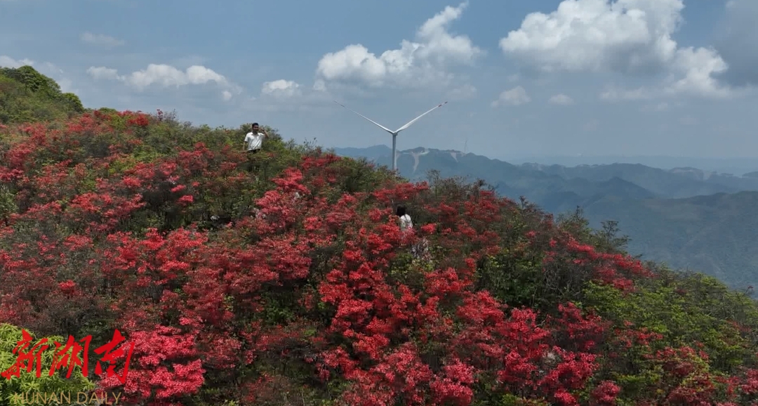湖南日报·新湖南客户端4月30日讯(通讯员 何勇辉 魏颖辉 ) 眼下正是踏青赏花的好时节,宁远县桐木漯瑶族乡汉皇殿的野生高山杜鹃迎来了盛花期。花海、风车、云海相互交织,构成一幅美轮美奂的生态画卷,吸引了众多游客慕名而来打卡游玩。