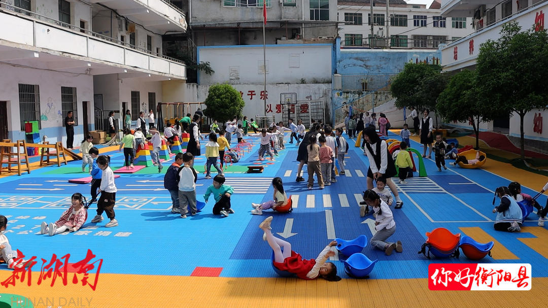 在演陂镇中心幼儿园,崭新的多功能操场映入眼帘,雪糕筒、排球场、投篮筐、鞍马垫、陀螺转盆等儿童体能游戏器材一应俱全。孩子们在老师的带领下嬉笑奔跑,操场上充满了欢声笑语。演陂镇中心幼儿园所在建筑群始建于上世纪80年代,由曾经的镇中心小学改造而来,基础设施陈旧,也存在一定安全隐患。去年10月,我县参加美团乡村儿童操场公益计划,演陂镇中心幼儿园成为第一批进行改造的乡村幼儿园,“量身定制”了全新的多功能操场,并增添了一系列体能游戏器材,总价值超过10万元。