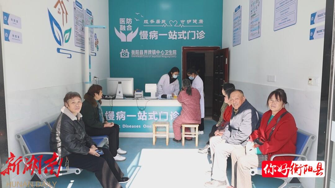 在界牌镇中心卫生院慢病“一站式”门诊,医务人员为前来就诊的患者测量了血压、空腹血糖、身高、体重后,便引导到慢性病诊室门诊,整个过程便捷高效。自去年界牌镇中心卫生院慢病“一站式”门诊投入运营以来,通过为高血压、糖尿病等慢性病患者提供个性诊疗、健康宣教、定期随访管理等服务,打造“精准化、专业化、规范化”的慢病管理“一站式”服务,全方位守护基层群众的身体健康。