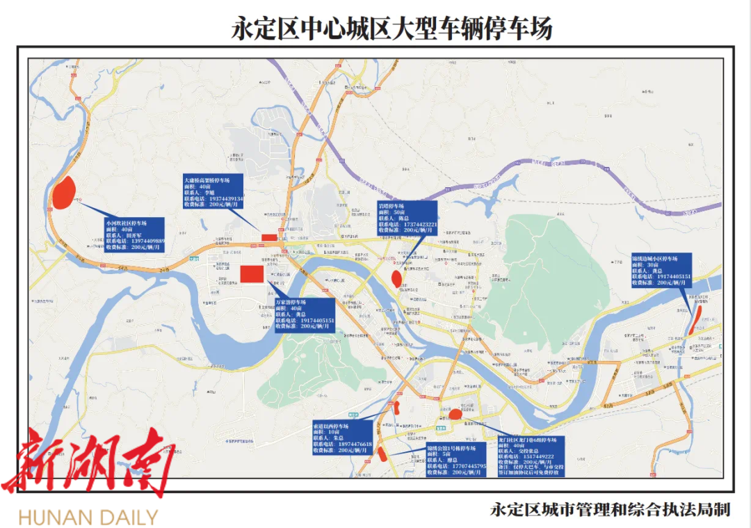 违停乱象虽然有了缓解,但以前违停的车辆并没有“消失”,这些车辆停在哪里又成了新的问题。为此,永定区新建了岩塔停车场、锦绣边城小区停车场、龙门社区龙门巷6组停车场、锦绣公馆1号栋停车场、小河坎社区停车场、大庸桥高架桥停车场、万家溶停车场、天门山索道以西停车场8个大型车辆疏导点,让大型车辆“有位可停、有序停放”。