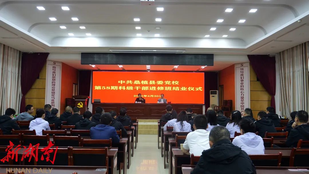 湖南日报·新湖南客户端4月30日讯(通讯员: 钟彬豪)4月30日,中共桑植县委党校第58期科级干部进修班结业仪式举行。进修班45名学员完成所有课程,顺利结业。