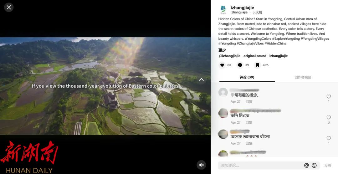 “izhangjiajie”海外社交媒体平台首条视频突破15万+