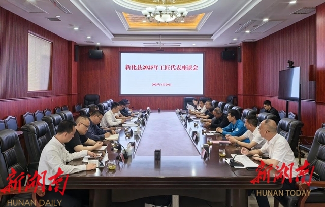 湖南日报·新湖南客户端4月30日讯(通讯员康爱军 曾振科)4月29日上午,新化县举行2025年工匠代表座谈会,向全县各行各业、各条战线上的劳动模范和工匠人才们致以节日的祝贺和崇高的敬意,动员和号召全县广大职工群众深入学习贯彻习近平总书记在庆祝中华全国总工会成立100周年暨全国劳动模范和先进工作者表彰大会上的重要讲话精神,以先进模范为榜样,勇担时代重任,扎根新化热土,焕发劳动热情,为新化高质量发展、现代化建设贡献力量。县委副书记、县长彭韬出席并讲话;刘志军、伍玉章出席。