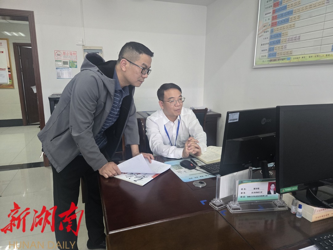 在县第一人民医院,危重呼吸科的医生正对照胸片向患者讲解病状。检查单上郴州HR、湖南HR字样代表了区域范围内医疗检查检验结果互认,避免转院就诊重复检查,节约医疗资源,为患者减轻负担。