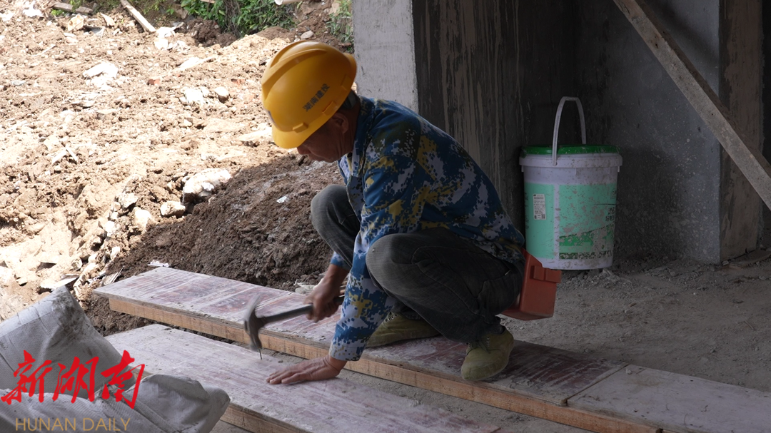在文化场馆中方驿施工节点,木工师傅潘上进正头戴安全帽,蹲在木板材料前用锤子钉入钢钉,他参与荆坪古村提质改造项目建设已有一个多月。“今天是五一劳动节,我们虽然不能休息,但想到通过自己的双手能为古村焕新贡献一份力量,就感到非常快乐。”潘上进表示,“目前各项建设进展顺利,我们坚守在岗,就是要把工作做好,确保工程圆满完成。”