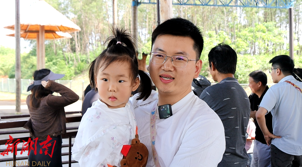 游客 王先生: 我们是从长沙过来的,这已经是我们全家第二次过来了。和其它的动物园相比,这里能够和动物近距离互动和接触,小朋友非常喜欢。刚才我们喂过了长颈鹿,玩得很开心。