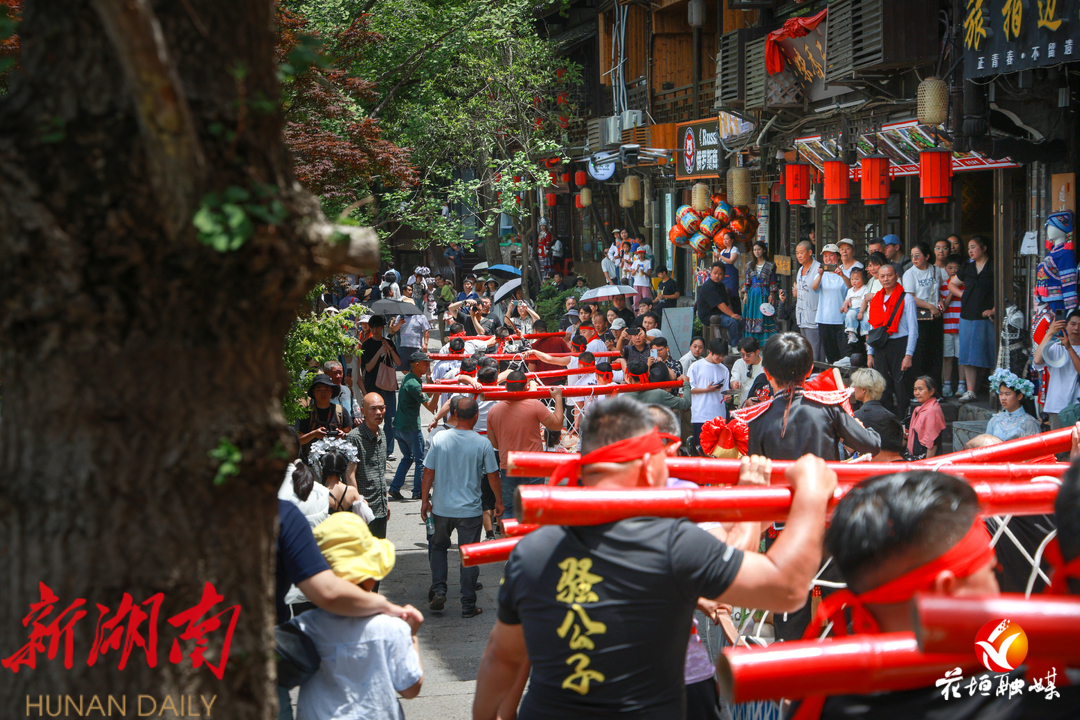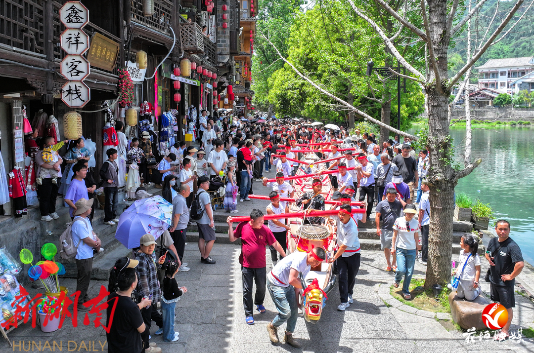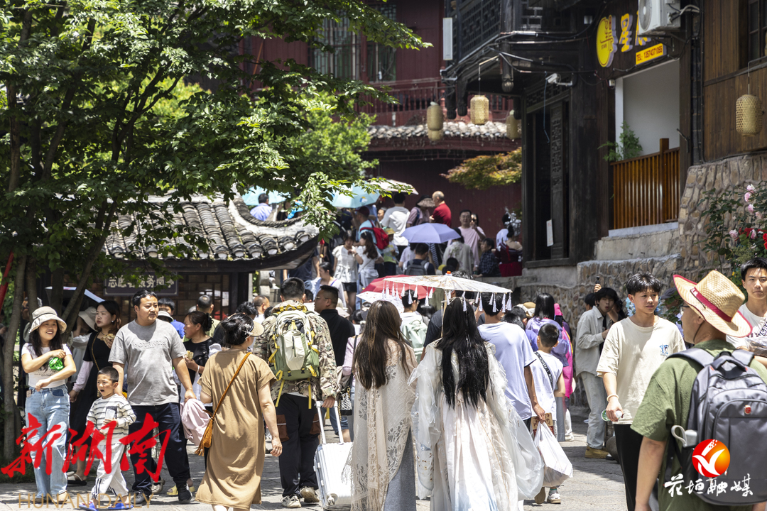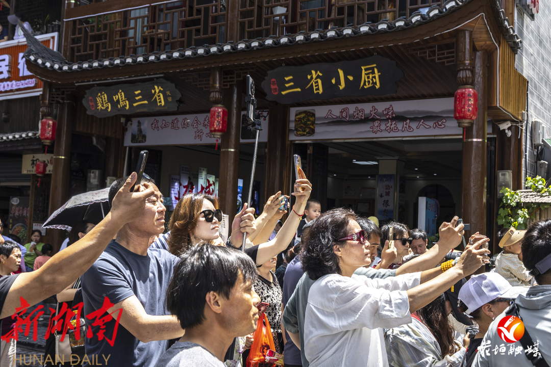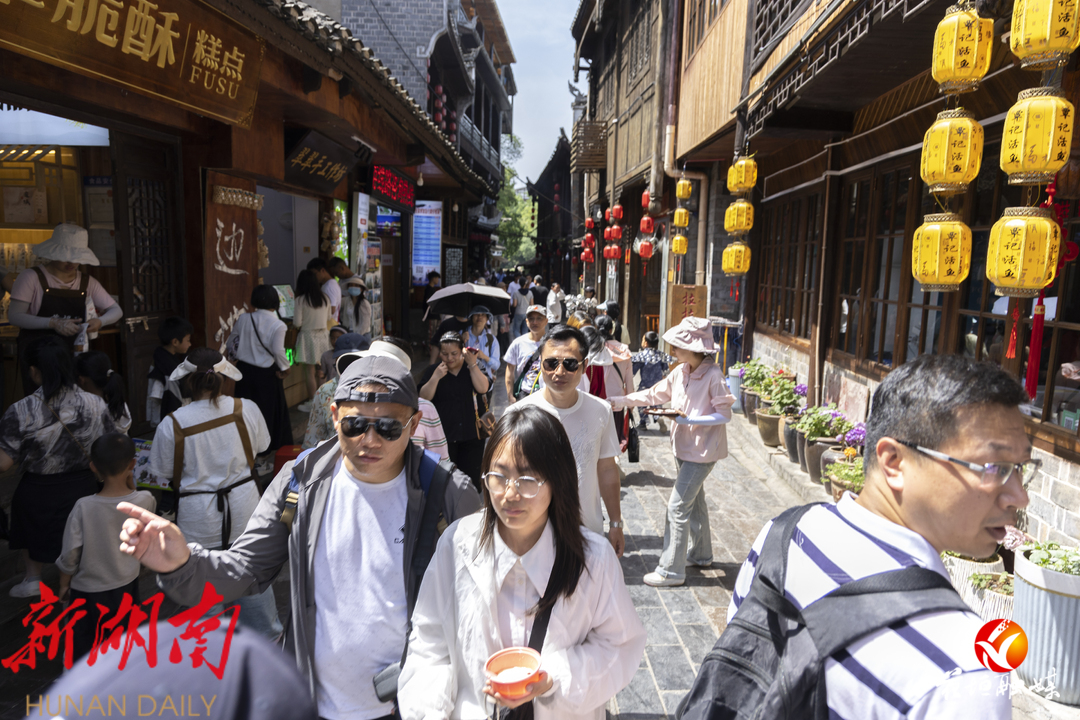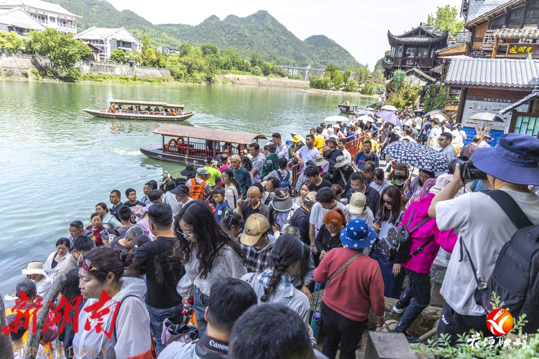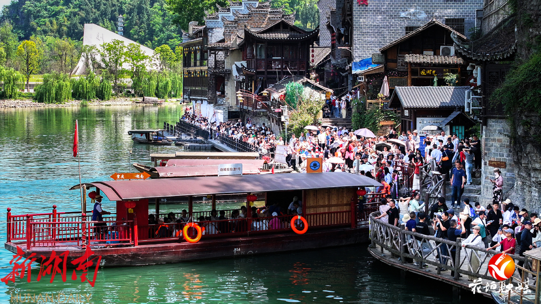 湖南日报·新湖南客户端5月1日讯(通讯员 杨泽江 吴向申 邓雨露 张庆港 石林荣)“这就是沈从文笔下清水江边的茶峒啊!石板路、吊脚楼、拉拉渡,和书里写的一模一样!”今日上午,来自常德的游客胡颖漫步在边城茶峒的青石巷中,对着镜头感慨万千。“五一”假期首日,这座文学边城开展丰富多彩的节目,将游客带入一场跨越时空的文化盛宴。