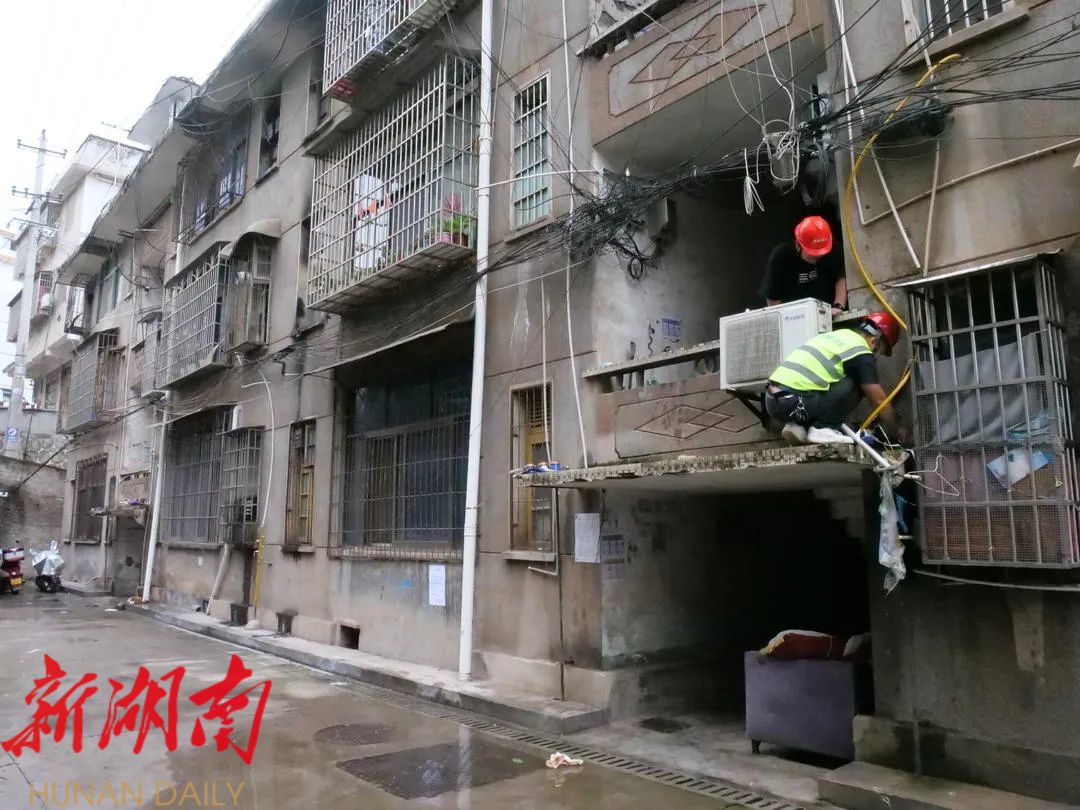 在老城区,许多水表安装在狭窄空间或高处。居民楼里,尚卫从二楼楼梯翻到空调外机平台,蹲着身子完成水表更换。“这里太窄了,你在下面递工具就行。”他对同事说。