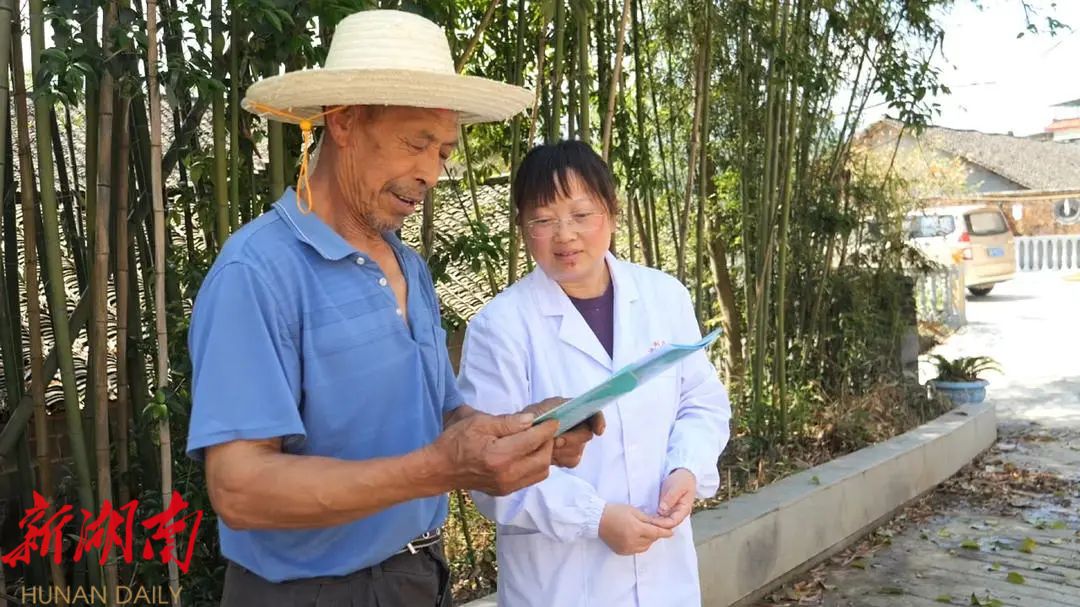 在随访途中,熊红艳遇到了孟秀芝的邻居陈泽远老人。她立即停下脚步,拿出体检报告耐心解释,又为老人测量了血压。“熊医生服务周到,不怕麻烦,大家都夸她。”村民们朴实的话语,道出了对这位村医的认可。
