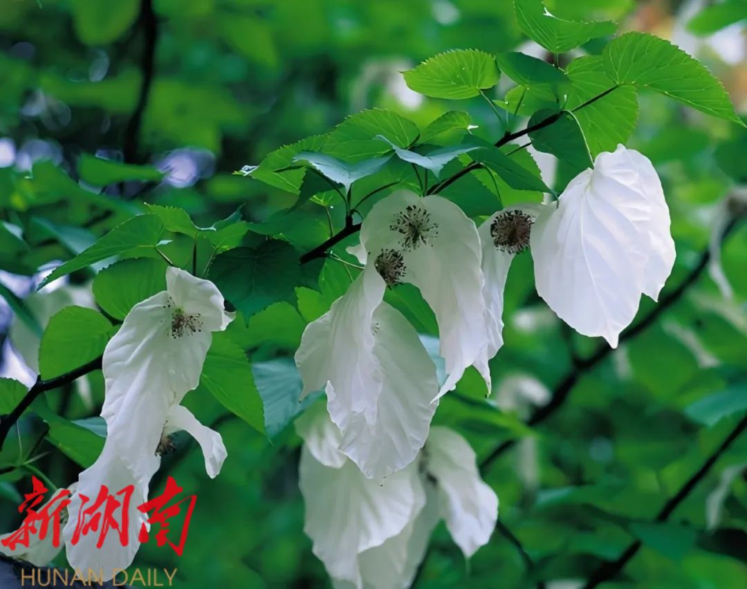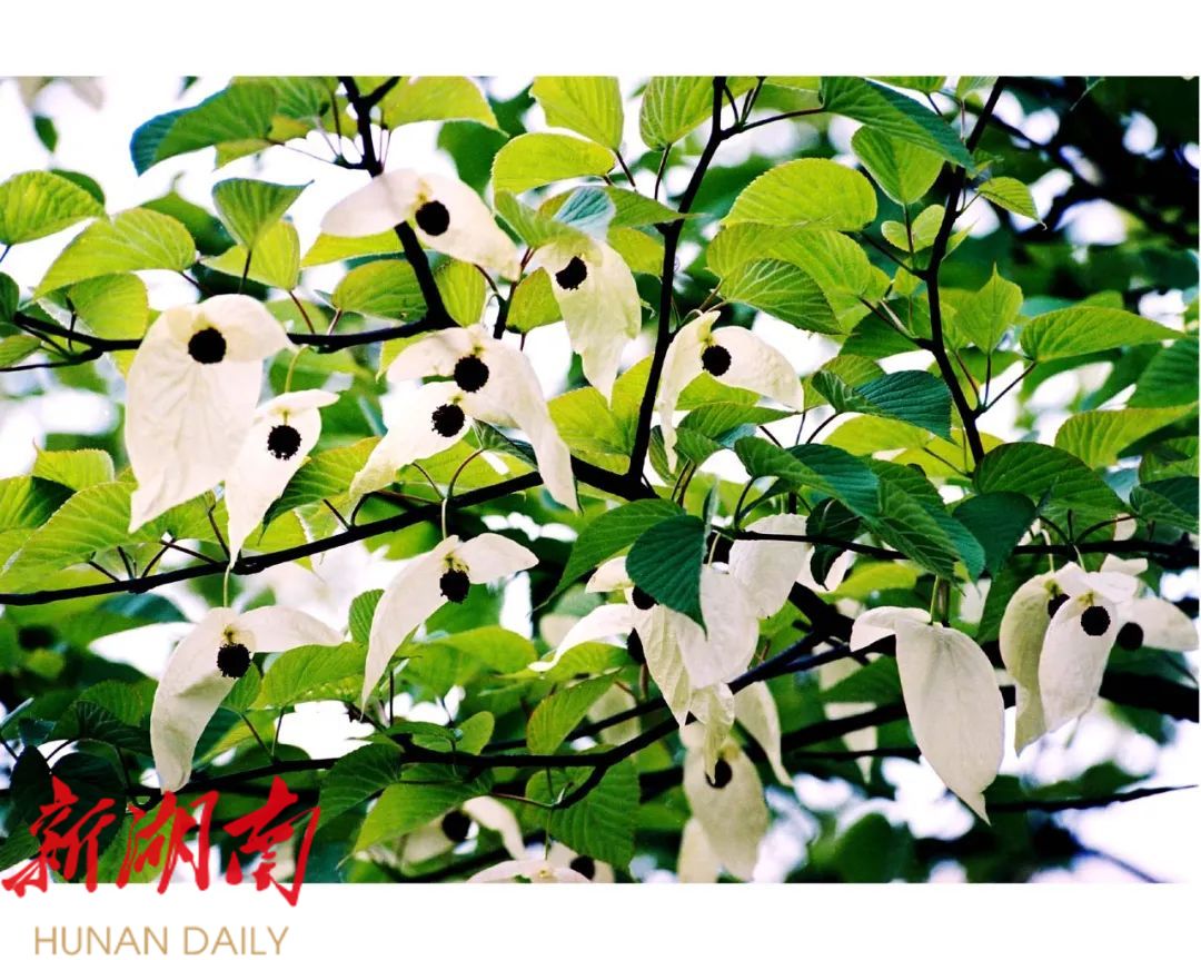 近日,张家界天门山景区的珙桐园迎来了一年中最美的时刻,园内的珙桐树上挂满了洁白的花朵,宛如一群白鸽栖息枝头,吸引众多游客前来驻足观赏。