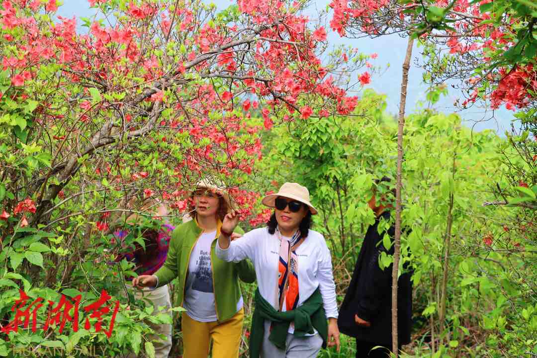 春日的步道上,来自邵东的冒女士与闺蜜们正举着手机定格美好瞬间,发梢间别着新捡的杜鹃花瓣,笑靥与花色相映。“听说岳坪峰的映山红开了,我们特意过来。”她望着漫山遍野的火红花海,语气里满是欣喜,“你看这景色多漂亮,大家心情格外舒畅,玩得也开心,真心推荐大家来感受这份春日浪漫!”游人追逐着光影在花丛中漫步,欢声笑语惊起枝头花瓣,纷纷扬扬落在肩头,引得蜜蜂绕着鬓边的花瓣嗡嗡盘旋,为这场春日之约添了几分灵动的装饰。
