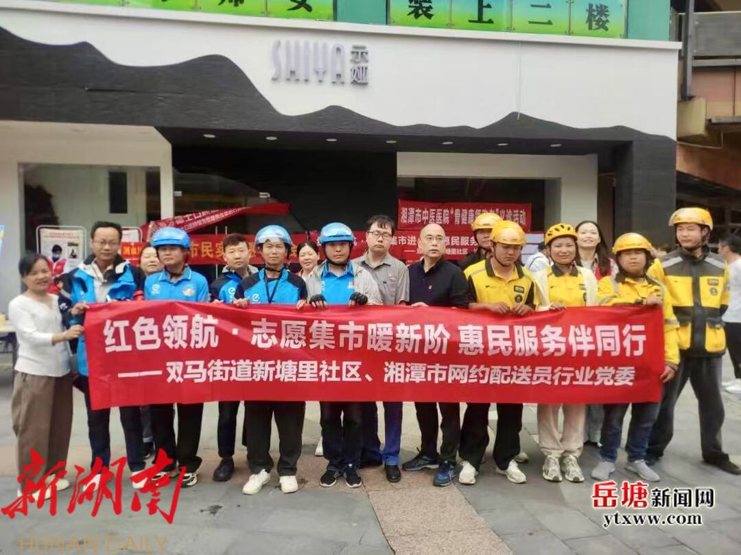 岳塘融媒4月30日讯 (通讯员:姜琳)为深入推进党建引领基层治理,践行“三听三问”,双马街道新塘里社区党总支联合湘潭市网约配送员行业党委,于4月30日在万达红街举办“红色领航·志愿集市暖新阶 惠民服务伴同行”主题活动,精准对接外卖小哥等新就业群体需求,打造“家门口的暖心服务圈”。
