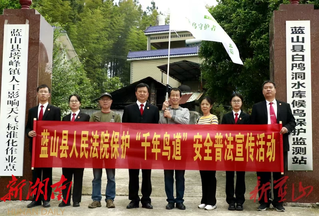 新蓝山客户端5月6日讯 (通讯员 卢康蕾)近日,蓝山县人民法院联合县护鸟营、县林业局等部门,采用“集市普法+校园课堂+实地清网”多维联动模式,开展“清除鸟网、织密法网,让鸟儿自由飞翔”普法宣传活动。