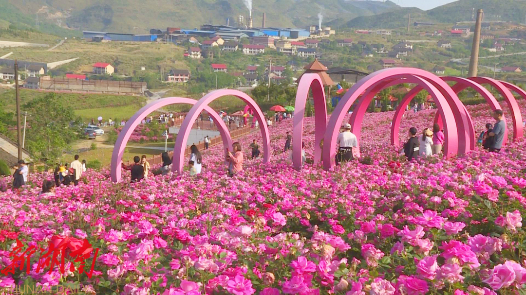 “五一”期间,锡矿山玫瑰爱琴海一片热闹景象。成片的玫瑰花竞相绽放,游客们漫步花间,拍照留念,享受假日时光。