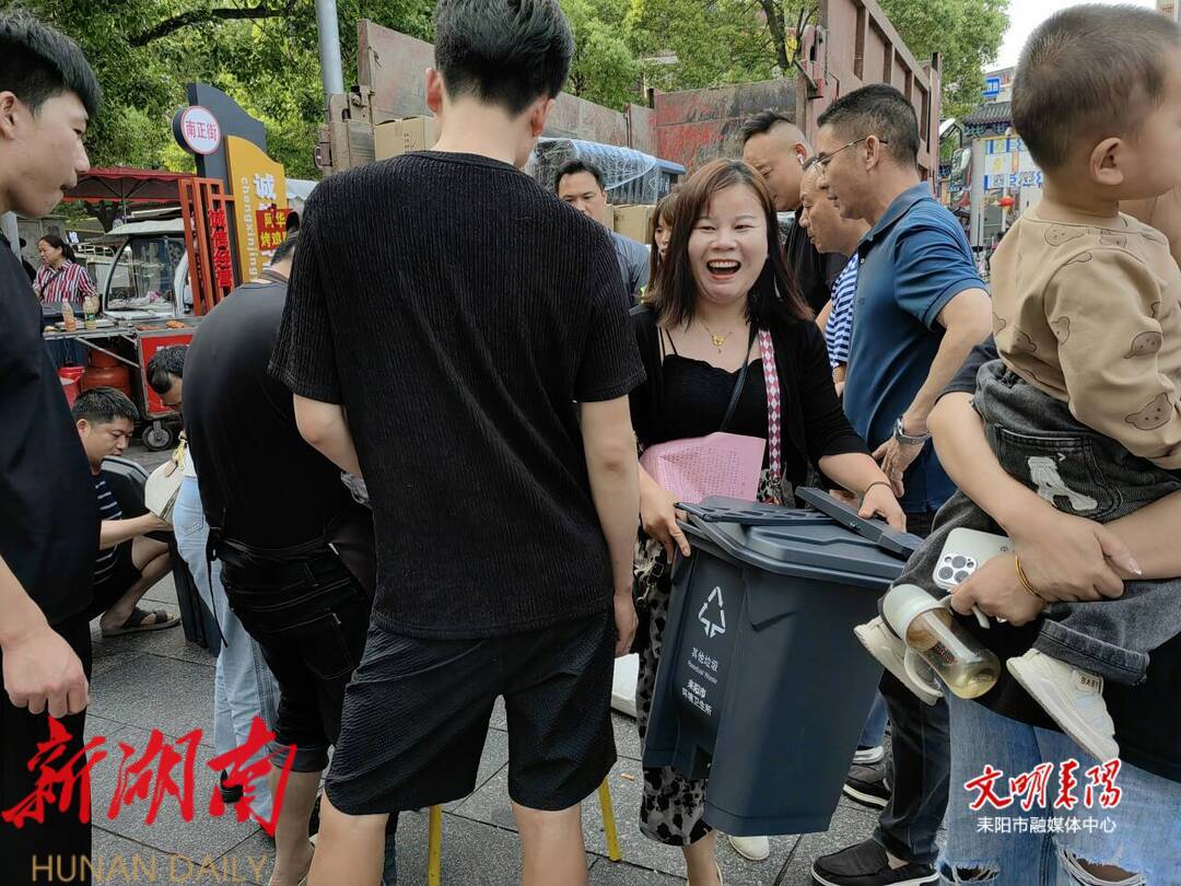 “今年我们做出的一个最大的改变是给南正街的商户摊贩发放了免费垃圾桶,一个小小的垃圾桶大大减轻了我们一线环卫工的工作压力。”环卫城南分所所长许辉介绍,以往南正街摆放的都是环卫用的绿色大容量垃圾桶,南正街内空间有限,商户认为垃圾桶占了地方,且因为容量大,清理间隔长,夏季容易有味道,影响了自己生意。