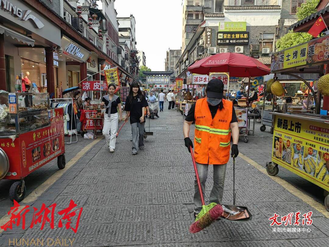 耒阳融媒5月6日讯(记者 刘晗) 每年五一假期,南正街都吸引着成千上万的游客前来游玩,品尝地方美食,感受节日氛围。随着假期游客数量的激增,环卫工人的工作也迎来了考验。