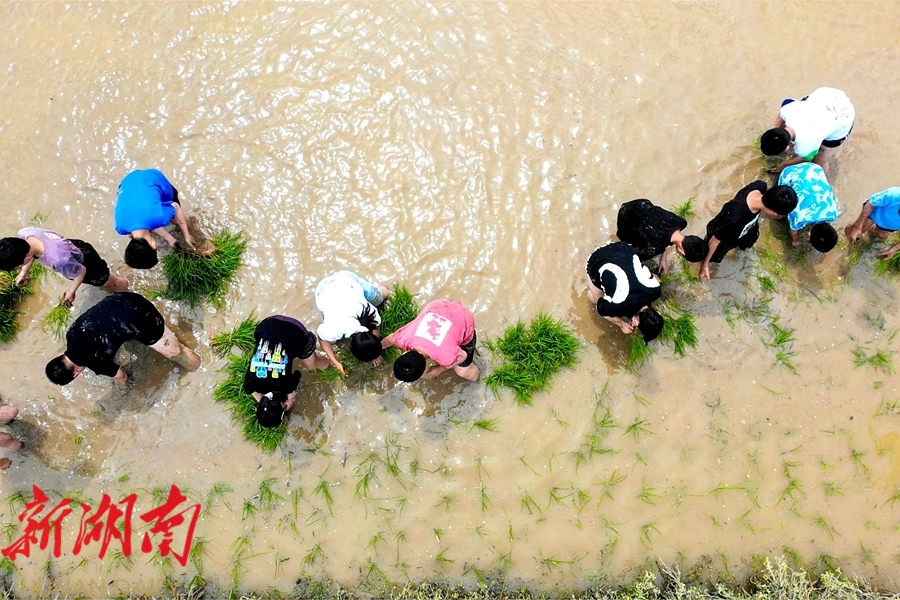 起初,学生们下到田间不知所措,在农技员详细指导下,逐渐放开手脚。“刚开始在田里站都站不住,腿都在抖,后来慢慢掌握了诀窍,熟练多了。”木塘垸镇中学一名初一学生指着刚插的两排秧苗,欣喜不已。