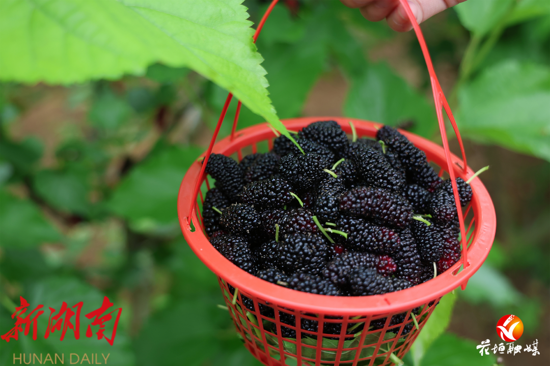 湖南日报·新湖南客户端5月7日讯(通讯员 叶紫子萌 龙兵)眼下正值桑葚成熟季,花垣县花垣镇卧龙榜村的桑葚采摘园迎来丰收,吸引了大批游客前来体验采摘乐趣。
