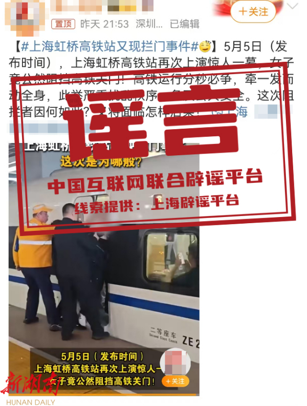 谣言:上海虹桥站发生“乘客阻挡高铁车门关闭”事件?