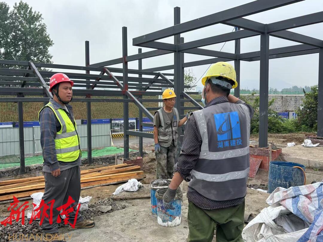 中方融媒5月8日讯 (记者:石端 张言)5月7日,中方县荆坪古村提质改造项目老村食馆建设现场一片热火朝天,工人们穿梭在脚手架间,墙体砌筑与装饰作业有条不紊地进行着。“主体框架就剩房子后面的木结构部分还没搭建,后续完成墙面工程,预计6月中旬就能完工。”湖南建工第七工程有限公司施工员郑钊钧擦了擦额头的汗水,语气中满是期待。