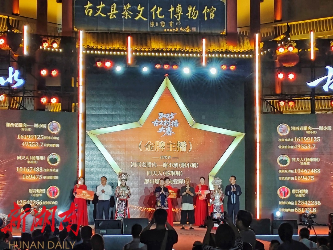 新湖南客户端5月8日讯(通讯员 王良昊)5月8日,随着2025茶祖节暨湖南(古丈)茶文化旅游节完美落幕,2025古丈村播大赛获奖名单揭晓。自2025茶祖节暨湖南(古丈)茶文化旅游节开幕以来,7个镇的百人直播团激烈角逐,赛事评审组秉承公正、公开、公平的原则,根据参赛集体或个人的带货能力、创新性、流量等多方面综合评定,分别评选出村播大赛金牌商家3名、特殊贡献奖商家2名,最佳组织奖赛区1个、最具人气奖赛区1个、最佳销售奖赛区1个,优胜奖主播6名、最佳带货主播1名、最佳人气主播1名、金牌主播3名。